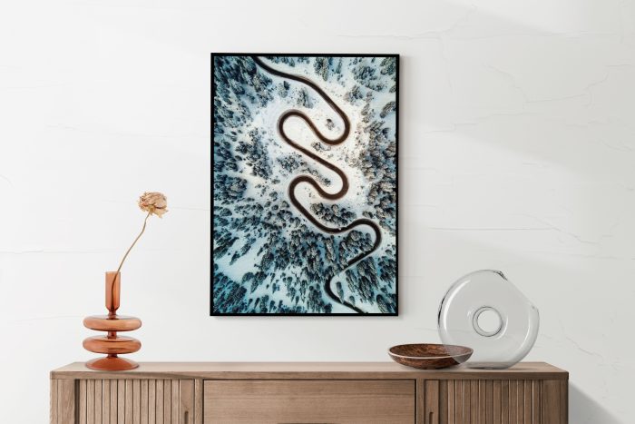 Bekijk hier het Akoestisch Schilderij Weg door een witte wereld Rechthoek Verticaal.