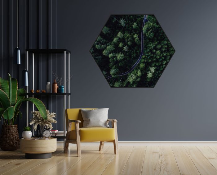 Bekijk hier het Akoestisch Schilderij Weg door het bos Hexagon.