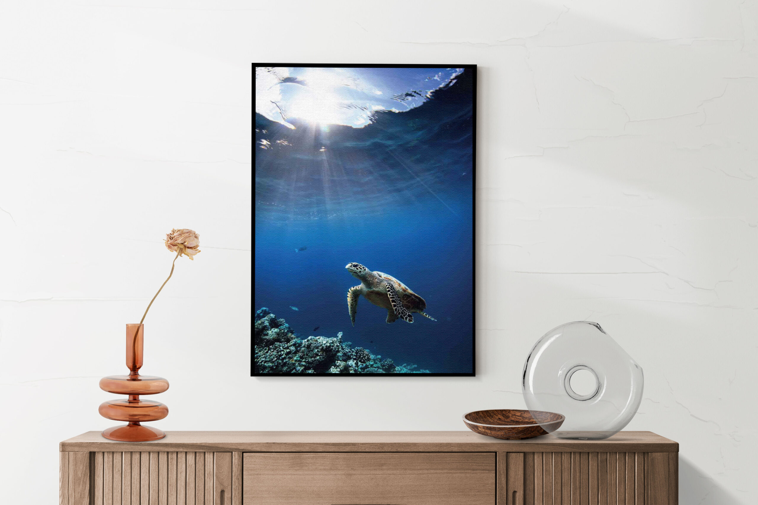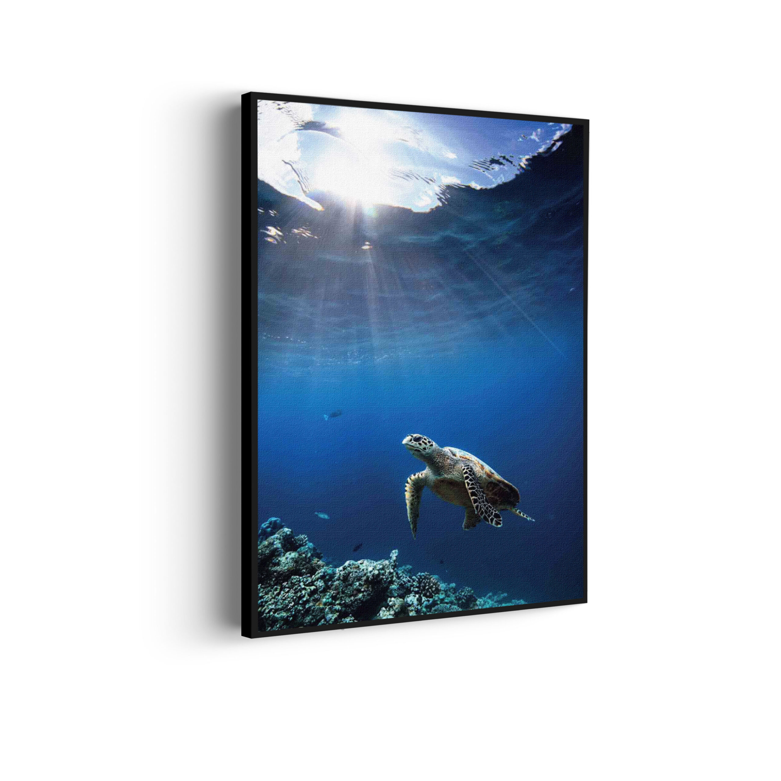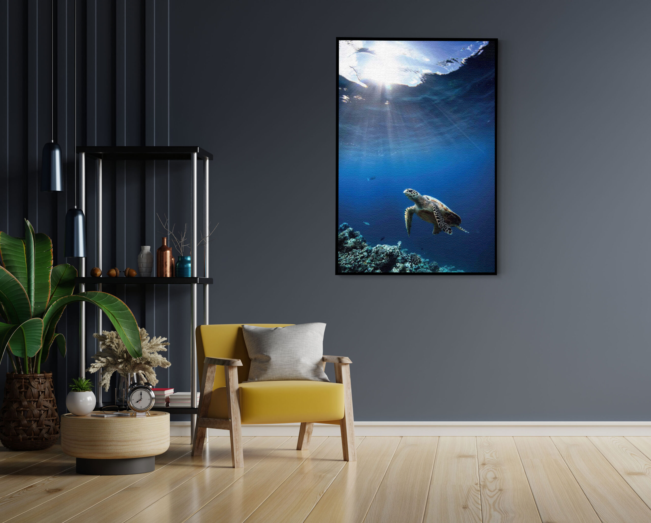 Akoestisch Schilderij – Zeeschildpad In Helderblauw Water 03Â Rechthoek Verticaal